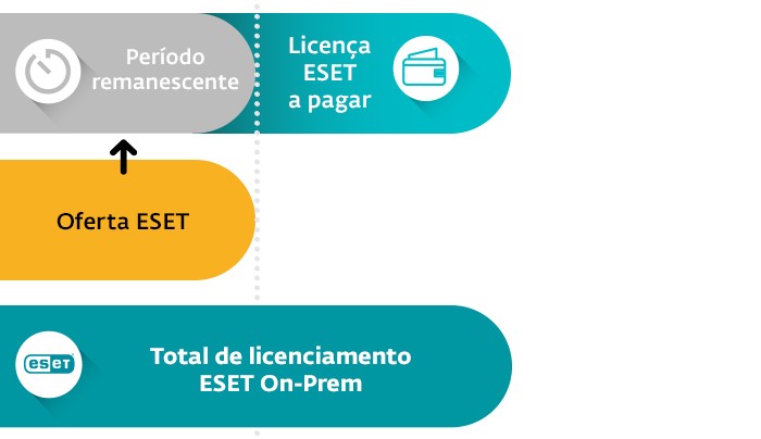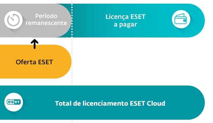 Oferecemos o licenciamento ESET, correspondente ao período de licenciamento concorrente válido, até à data de expiração. Desta forma, poderá desde já substituir a solução existente por uma solução ESET sem qualquer prejuízo do investimento.